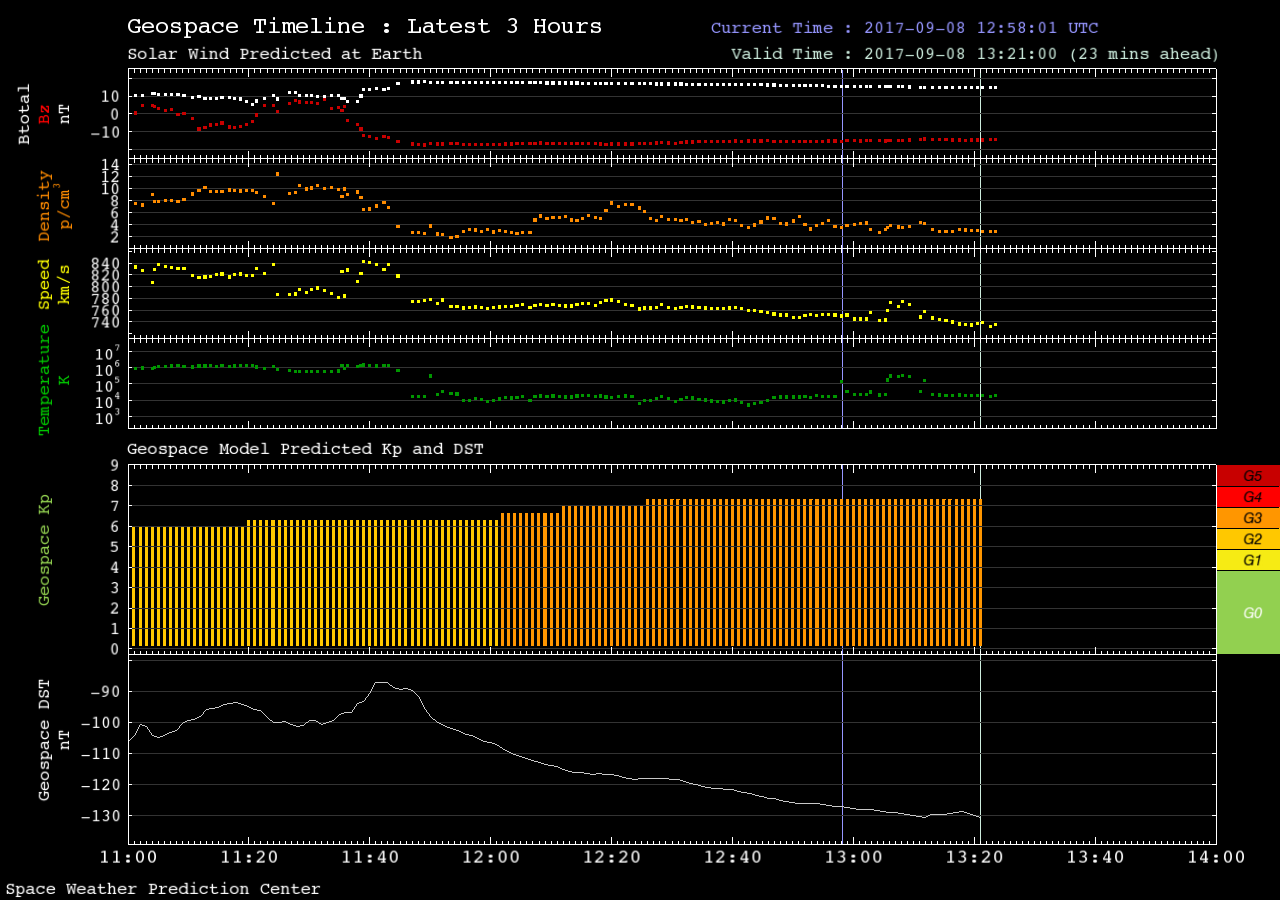De rode grafiek stelt dus de Bz-waarde voor. Hoe negatiever deze waarde, en hoe langer de negatieve periode, hoe sterker en zuidelijker het noorderlicht verwacht kan worden.